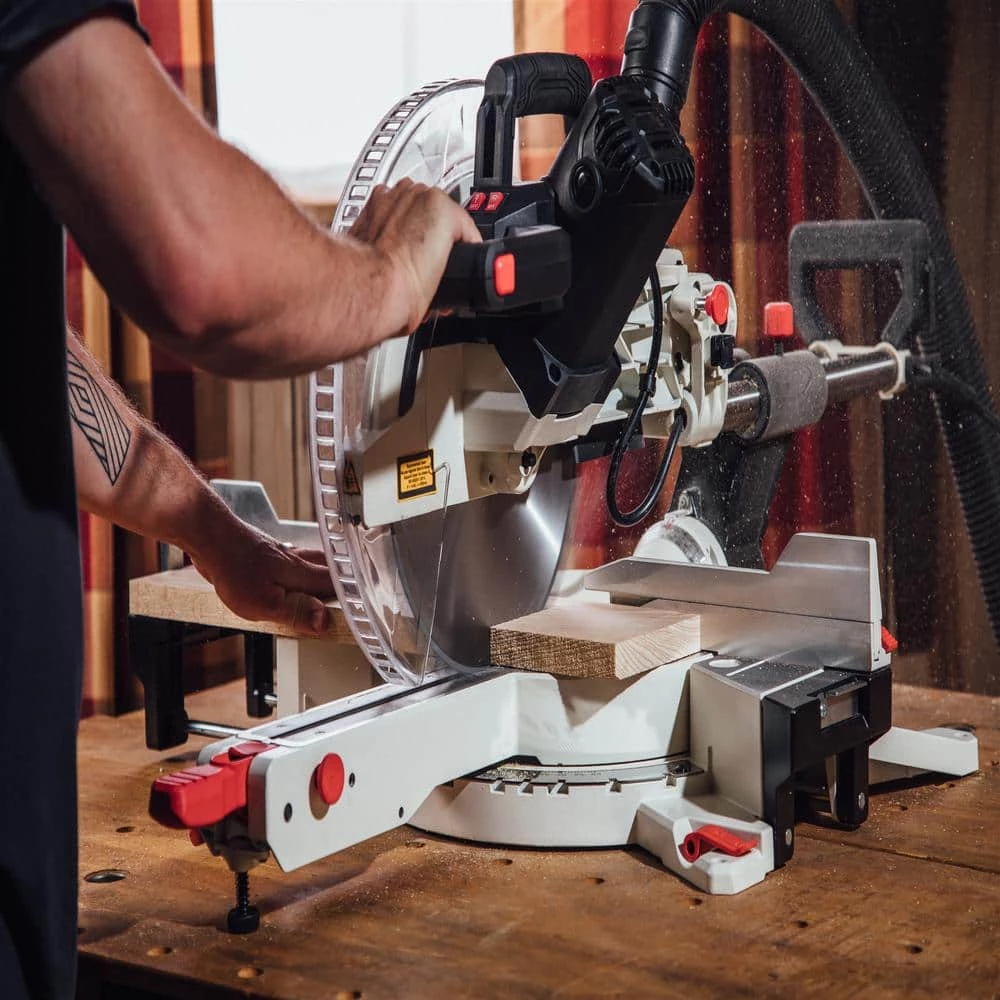 - Dual bevel capability with up front controls to maximize cutting of compound angles
