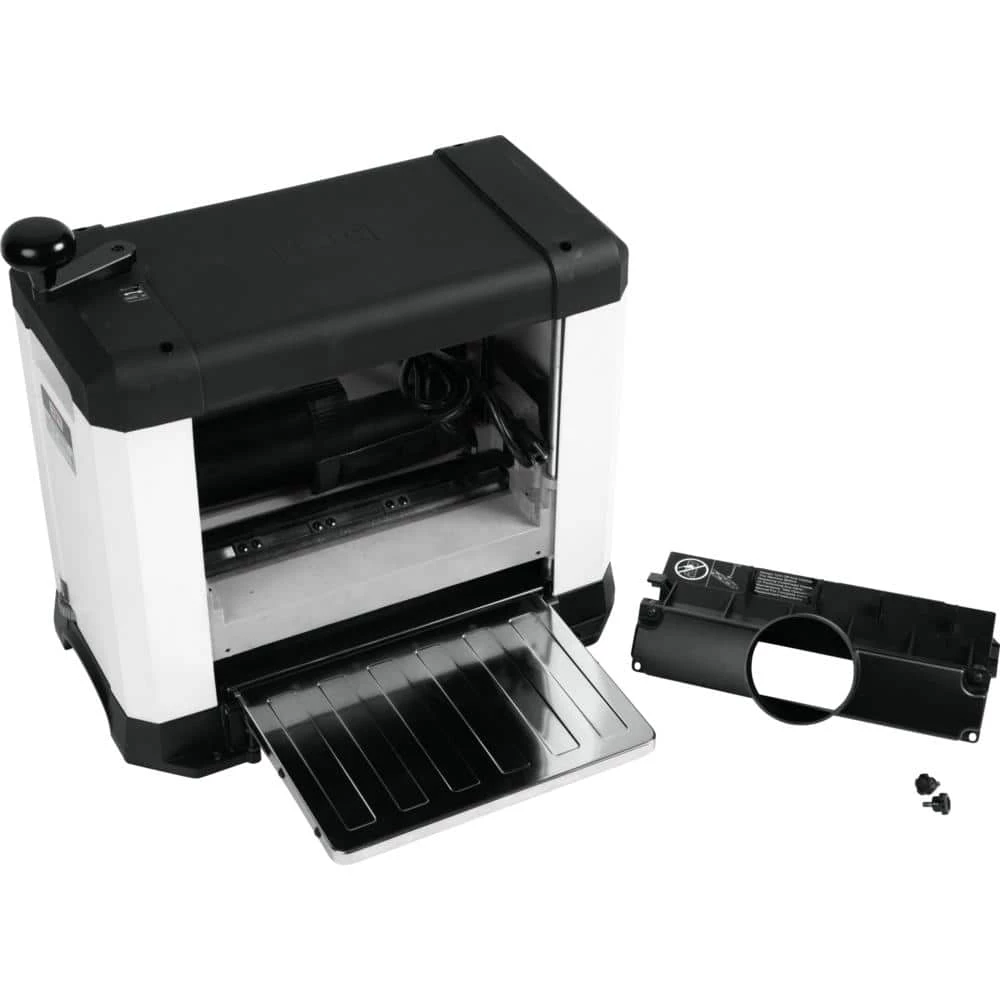 The Jet 13 Benchtop planer delivers the power and efficiency that woodworkers demand in the shop. The Jet 13 in. Planer produces a smooth and consistent cut surface thanks to its Helical Style Cutter head. The Helical Style Cutter head has 6 rows of 24 individual quick change inserts which can be easily rotated or replaced if damaged or worn. This segmented cutter head design helps reduce noise as its 2HP motor is turning at an impressive 10,000 RPM. The 13 Benchtop planer include a rugged 4 post design, adjustable folding tables, 2 infeed speeds and a sturdy Cast Iron base which helps reduce snipe.