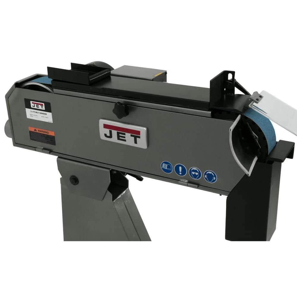 Perhaps the thing operators notice first when putting the JET BG-379 through its paces is how safe and easy it is to use, even when grinding larger pieces along the entire length of the belt. Pivoting belt assembly and hinged top cover, advanced belt tracking, vented and fixed front wheel and the JET exclusive Spark Arrester allow broad use of this JET Bench Grinder. Power and precision you can count on; backed by the industry-leading Two Year Warranty.