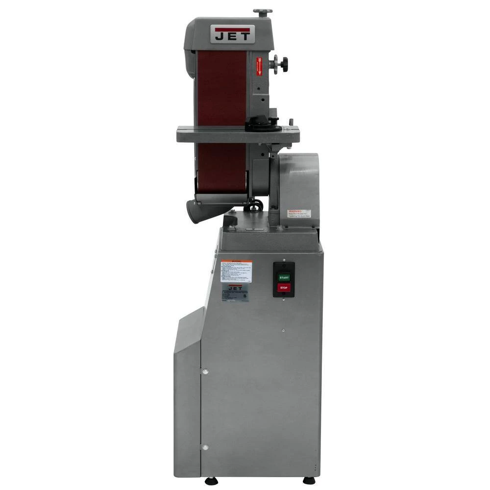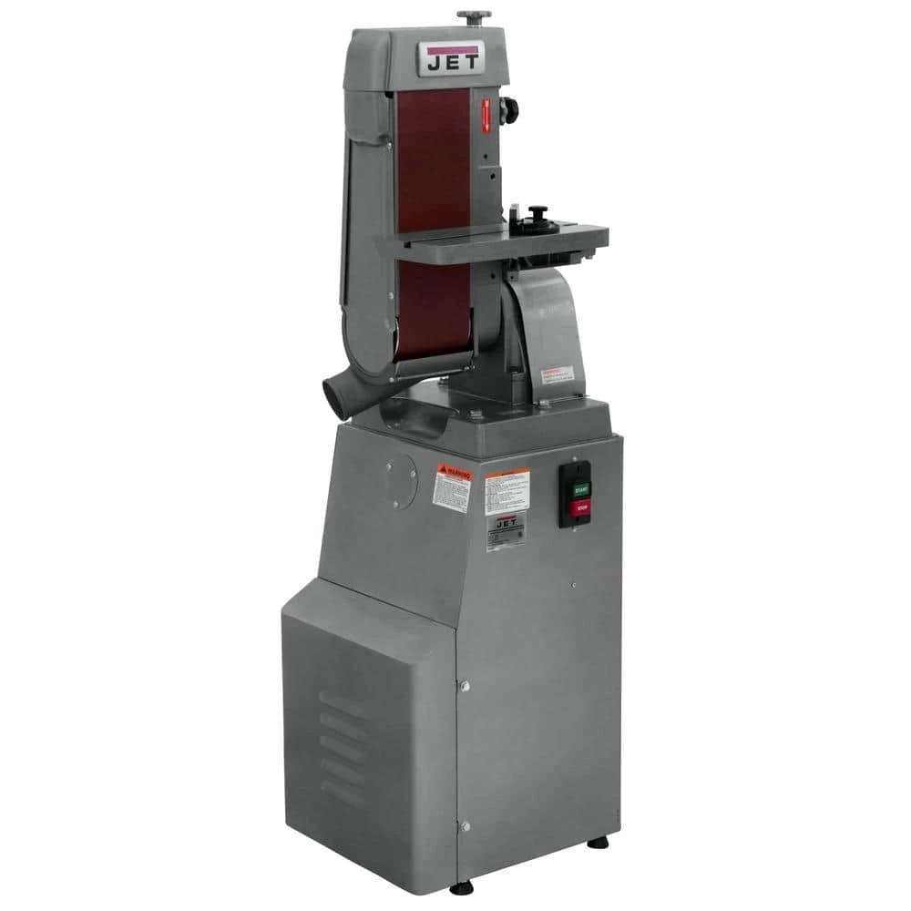 This JET Industrial Belt Finishing Machine starts with a heavy-duty, 1-piece steel stand and miter gauge, but offers users so much more in the way of versatility for high-performance results. Variable position locks for both vertical and horizontal belt head adjustments, removable/adjustable heavy-duty cast iron platen and tilting table permit premium contour finishes, as well as plain and compound mitering. A sleek design means it fits anywhere on your shop floor.