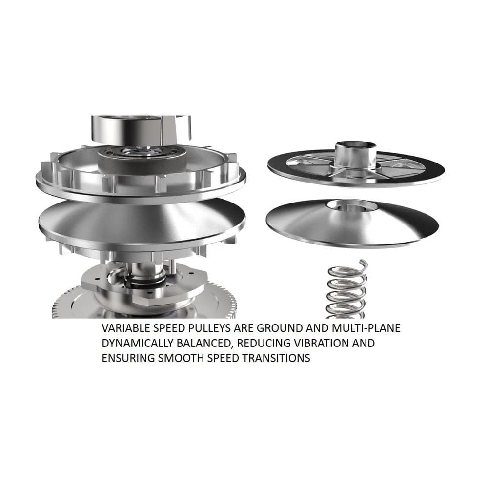 - Variable speed pulleys are ground and multiplane dynamically balanced, reducing vibration and ensuring smooth speed transitions