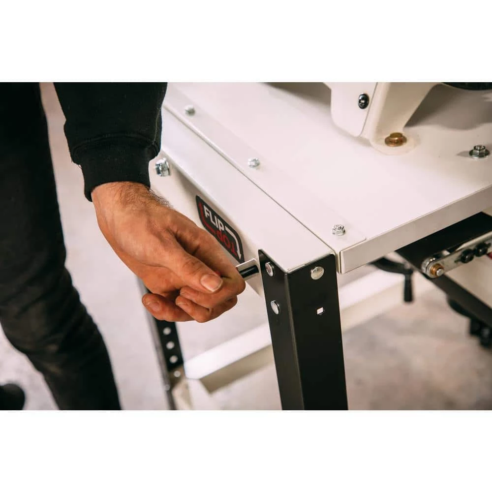 - Ergonomic handles on either side make rotating and locking the flip top easy