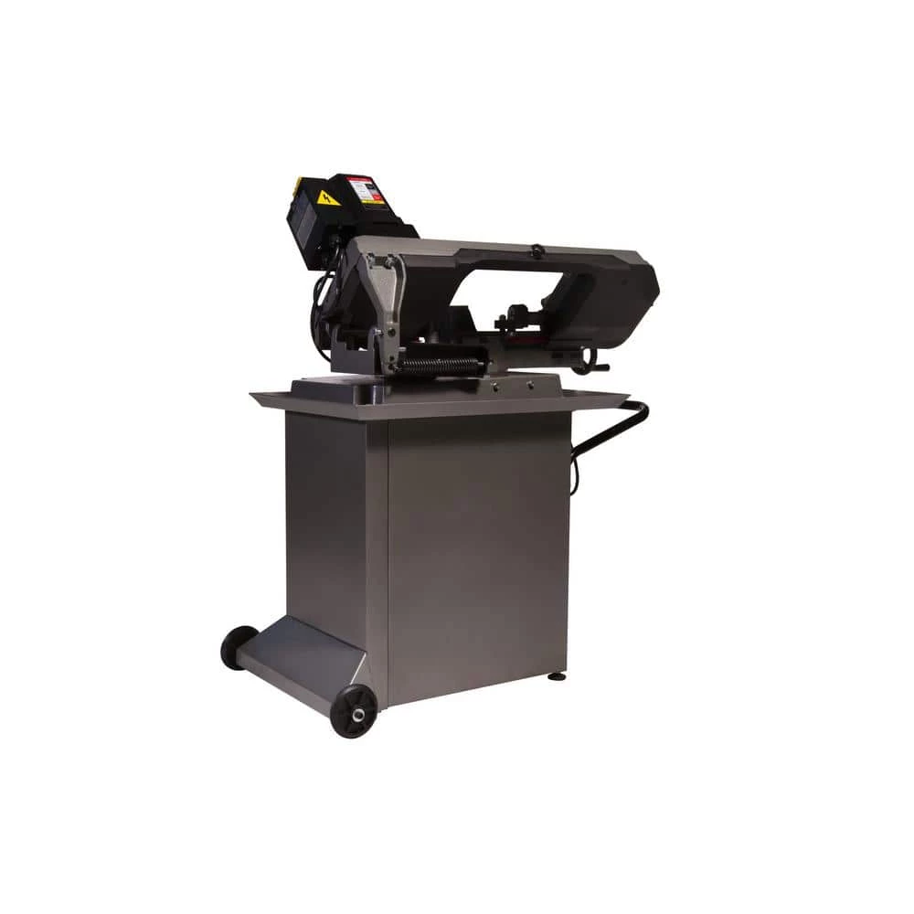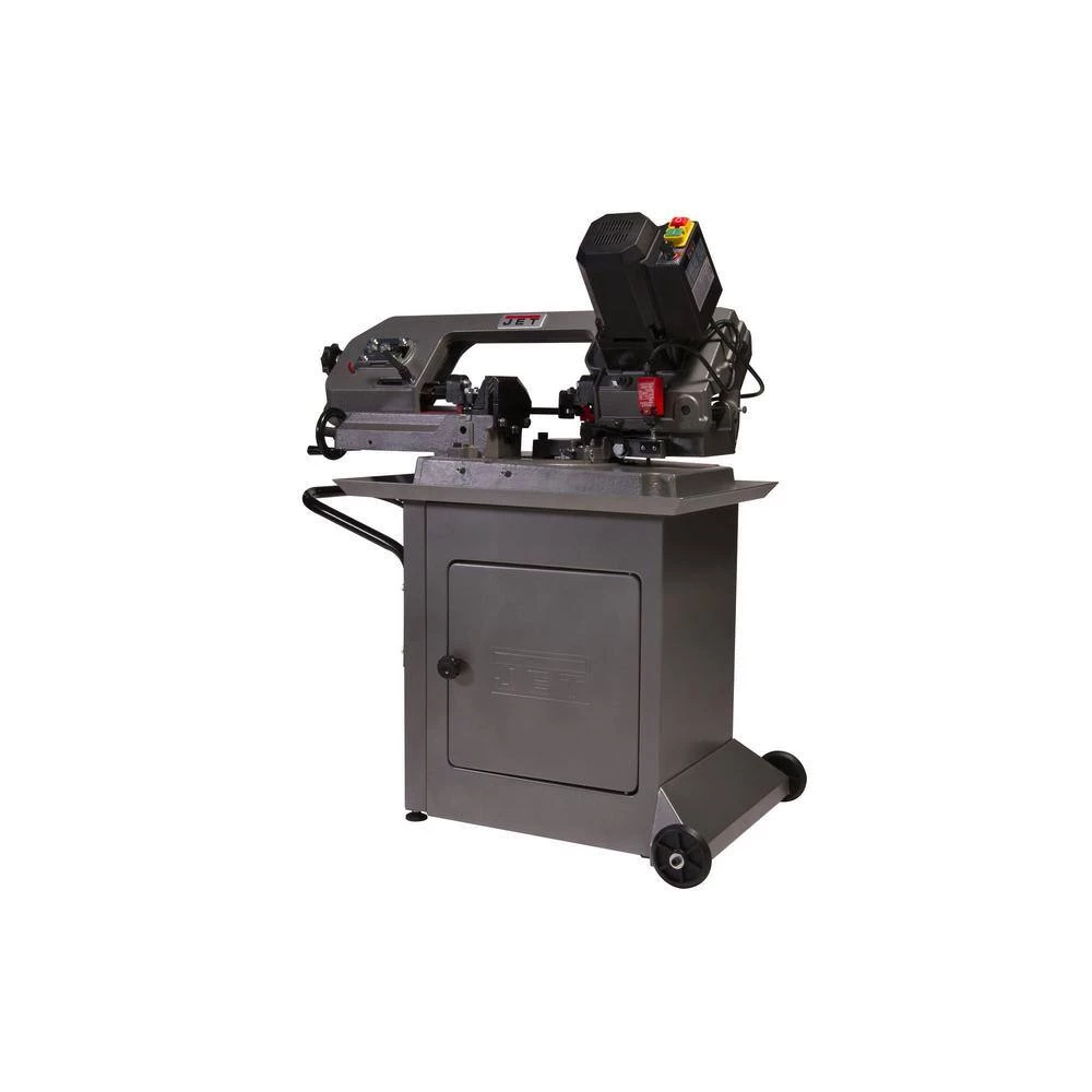 This JET Variable Speed, Mitering bandsaw packs the features in a small package. The exclusive 5 in. x 6 in. Portable Variable Speed Mitering Bandsaw includes a newly designed motor with a 3-step gear transmission for unprecedented torque output. The versatile swiveling head allows precision cuts without the hassle of moving the material.