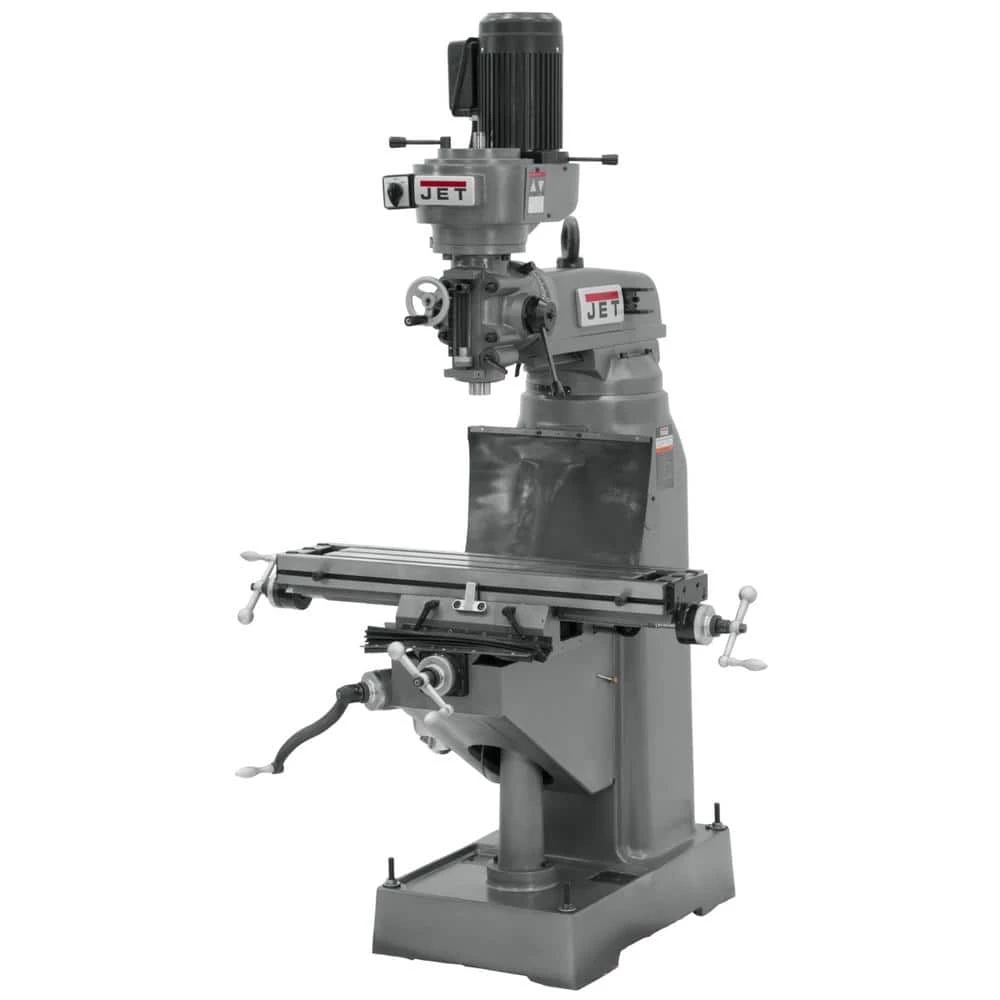 The precision bored and honed milling head, coupled with the hardened and ground 8 in. x 36 in. table ensures retention of tolerances, while locks on all moving surfaces increase user safety. The Jet JVM-836 has features you’ve come to expect that are backed by the industry-leading Jet 2-Year Warranty. Over 10 in. of front to back ram travel.