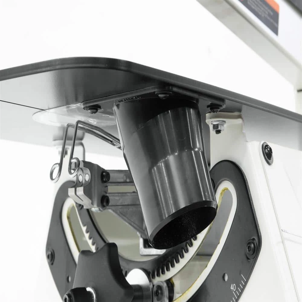 - Arm tilts 45° right and 30° left, keeping the work table flat for more accurate cutting