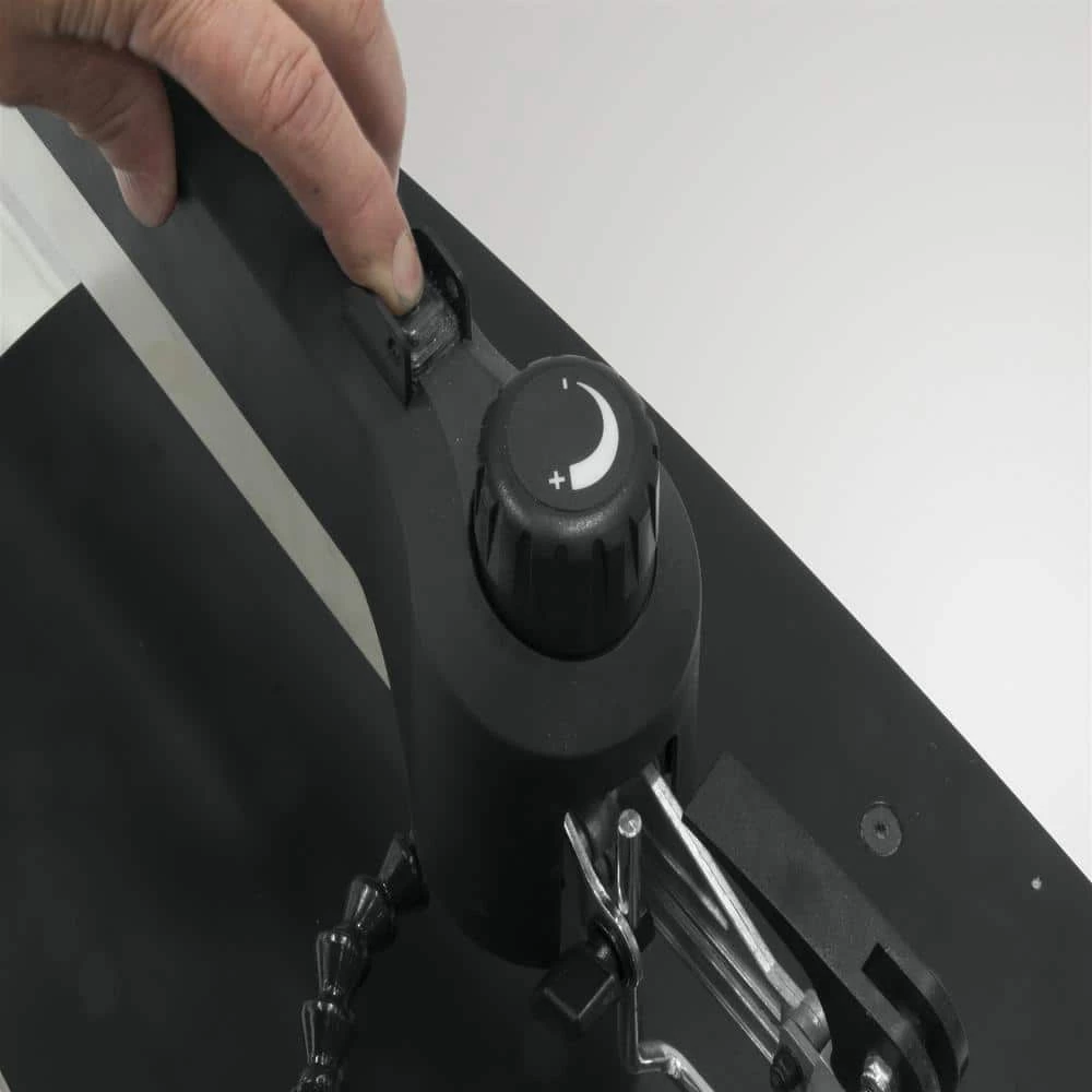 - Top lift, spring loaded arm raises 10 and stays up until pulled back down